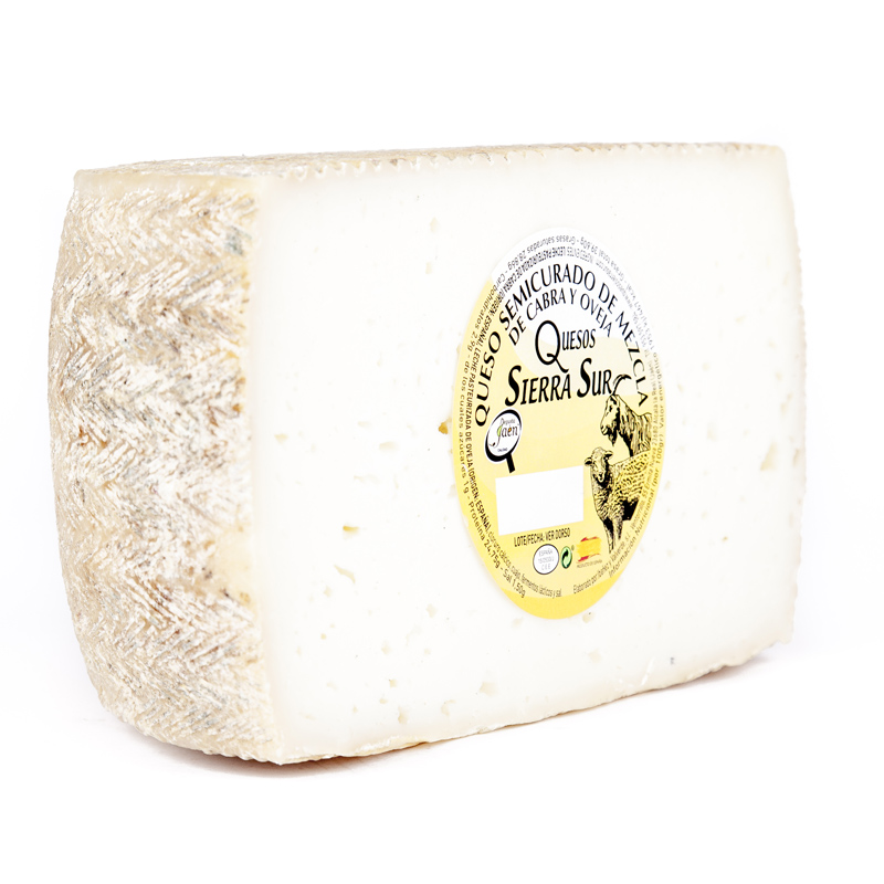 Queso semicurado de Mezcla, medio queso. Mezcla 50% leche de cabra, 50% leche de oveja